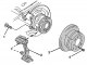 Монтиране и демонтиране на задния спирачен апарат Фигура 284. Демонтиране и монтаж на задния спирачен апарат: 1 — болт за монтаж на кабела на сензора за износване на спирачните накладки, 10 Nm; 2 — сензор за износване...